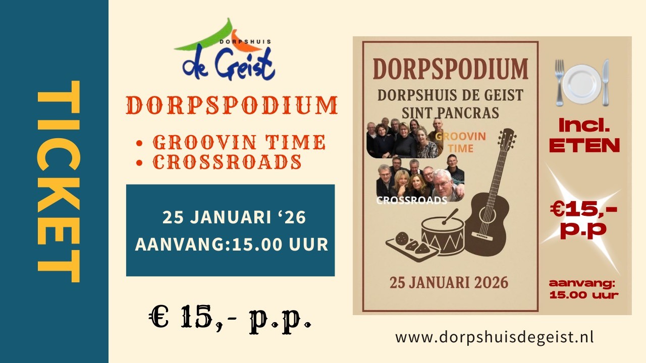 Kom genieten van een sfeervolle middag met 2 lokale bands - elk met 8 muzikanten - die de grootste hits uit de jaren '70 '80 '90 ten gehore brengen! Een middag vol herkenning, dans en gezelligheid in ons eigen dorp. Na afloop van het optreden kun je aanschuiven bij een heerlijk Oosters buffet, bereid door de kookkanjers van De Geist. Live Muziek - hits van toen, gespeeld door onze lokale talenten Gezellig, samen, eten, dansen en ontmoeten.